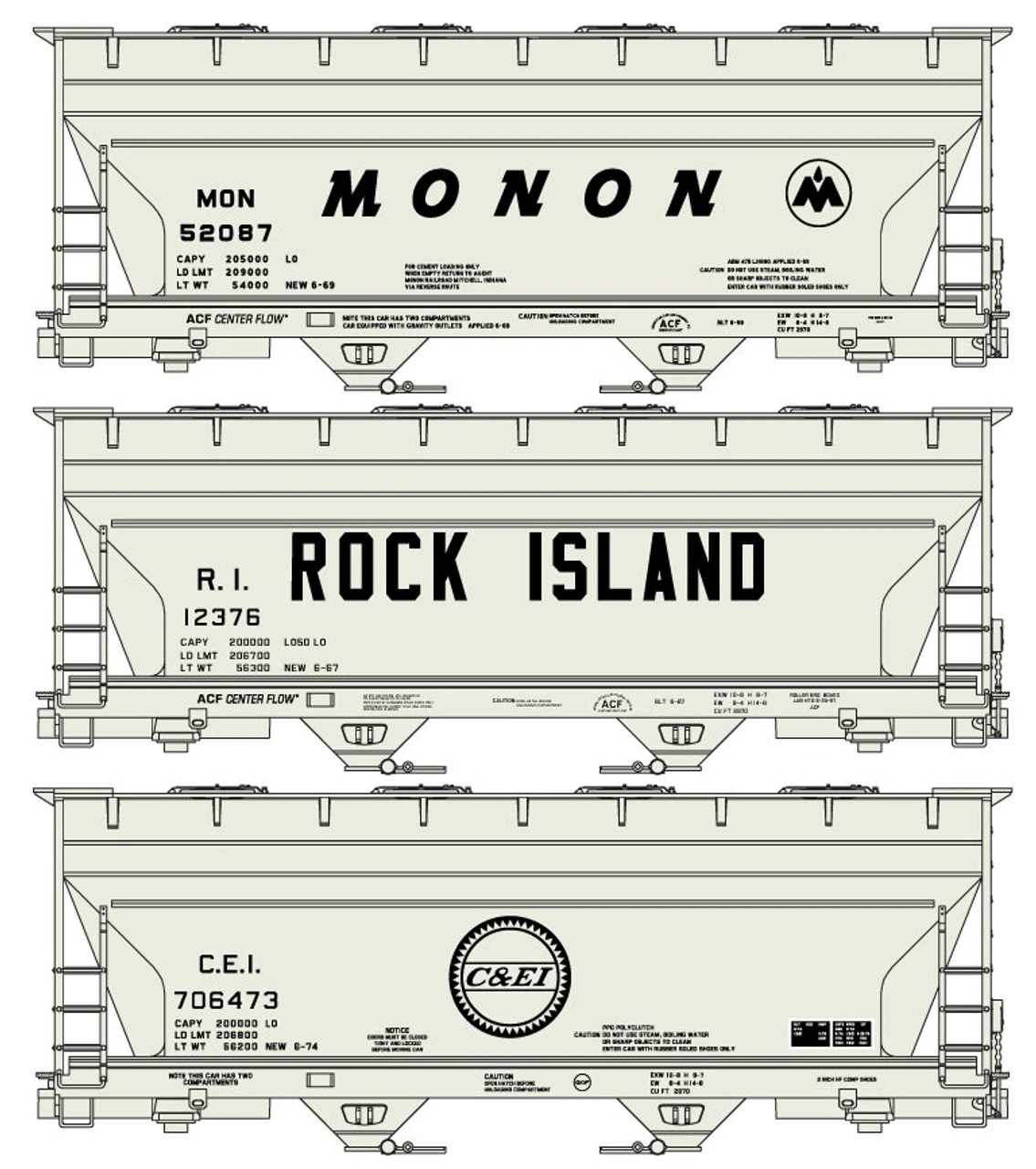 Accurail 8151 – Midwest Railroads – ACF 2-Bay Covered Hopper 3-pack – HO Scale