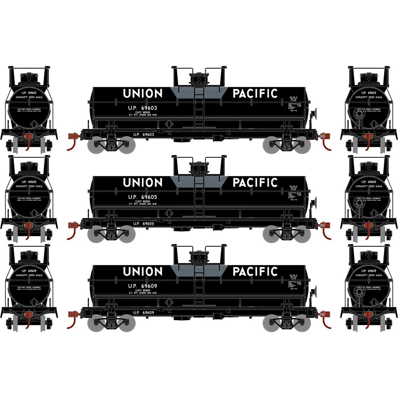 Athearn Roundhouse 73006 – Chemical Tank Car Union Pacific (UP) 69603, 69605, 69609 – HO Scale